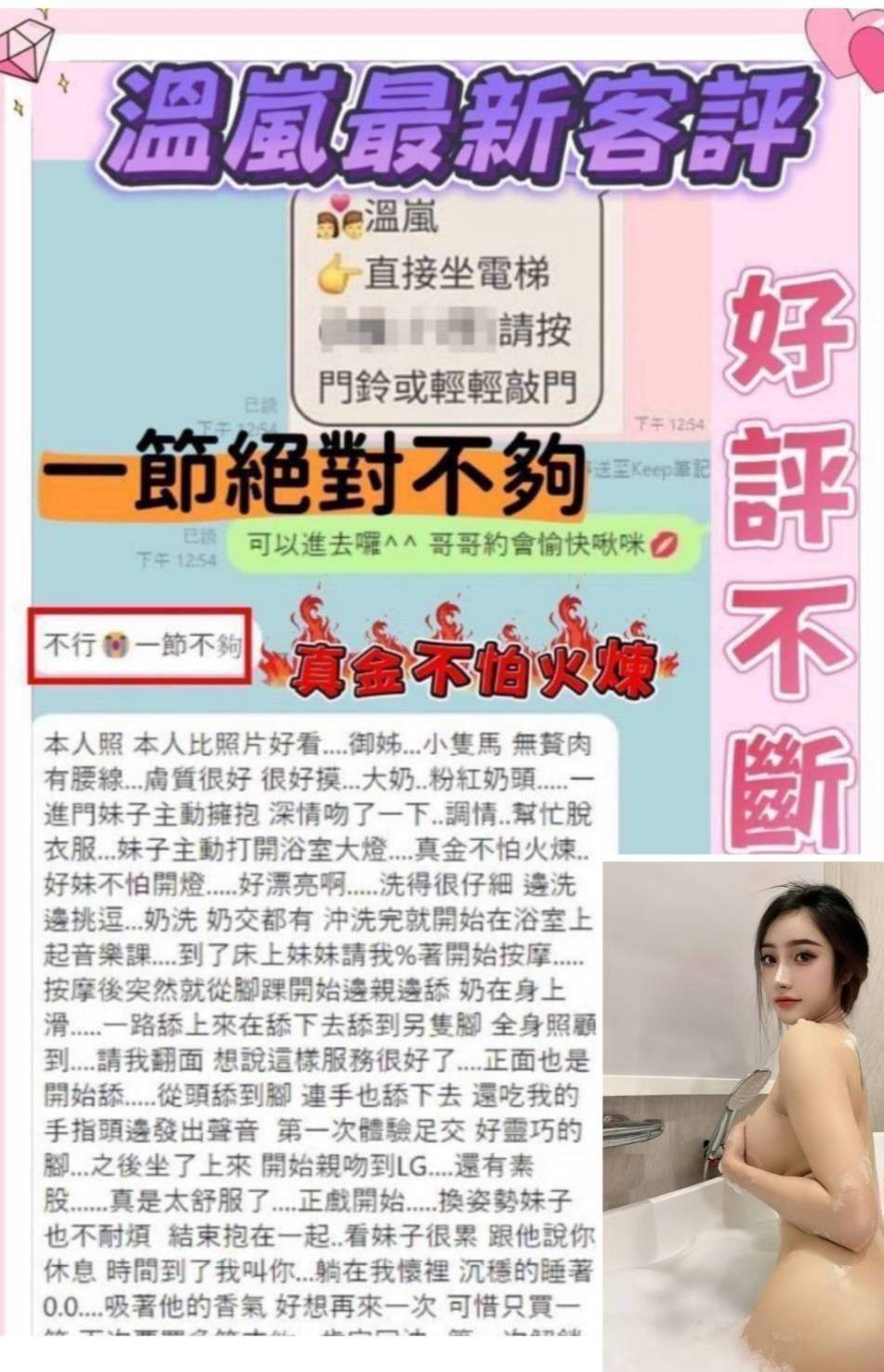 甜蜜共浴/殘廢澡/無套吹/舌吻/品鮑/69/按摩/乳交/奶炮/吞蛋舔睪丸/挑逗調情/舌尖舔滿全身/毒龍舔肛……