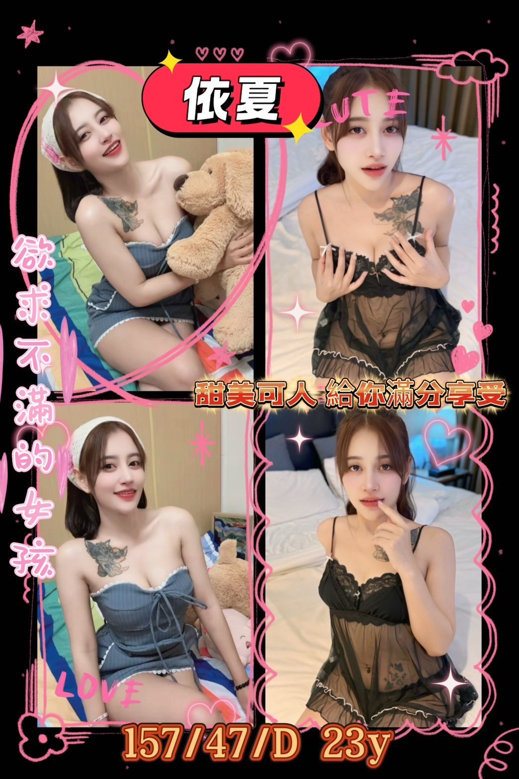 無套吹 深喉嚨 共浴 親嘴 舌吻 品鮑 69 舔蛋 奶泡 水中蕭 胸推 屁推 按摩 可配合絲襪 可配合情趣用品